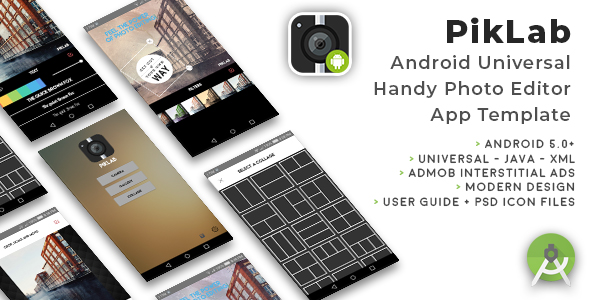 PikLab is easy to customize, Universal, native Android Studio project, Java/xml language