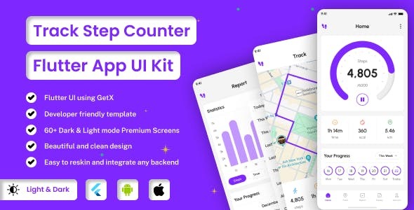 TrackStep – Step Counter | Tracker App | Flutter iOS/Android App Template