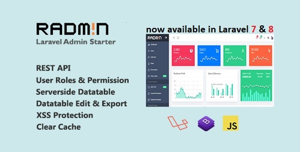 REST API, Advanced user, roles & permission management , Serverside Datatable, Datatable Edit and Export( CSV, EXCEL, PRINT, PDF, COPY),Cache Clear, XSS protection and many more features.