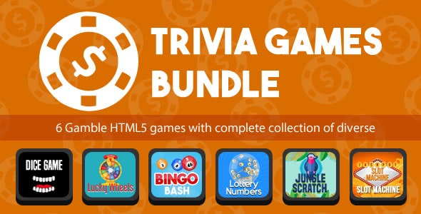This bundle includes 6 Gamble HTML5 games with complete collection of diverse to target different types of audiences.
