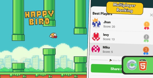 Happy Bird is an addictive Flappy Bird-style game where you guide a little bird through challenging obstacles. Collect special power-ups to gain invincibility and fly even farther! Climb the leaderboard and showcase your skills.