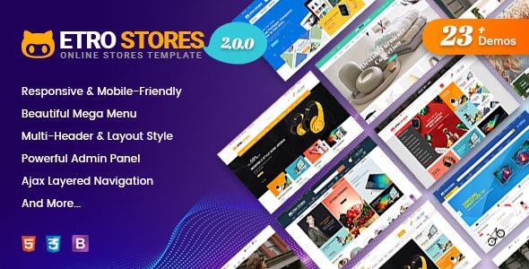 EtroStore is a modern, clean and elegant Shopify theme that is suitable for any shopping online stores. This minimal Shopify Sections theme comes with a huge number of professional features: 23+ Homepage Designs, Shopify Sections, Mega Menu, Product Color Swatches, Layered Navigation, Quick View and many more features.